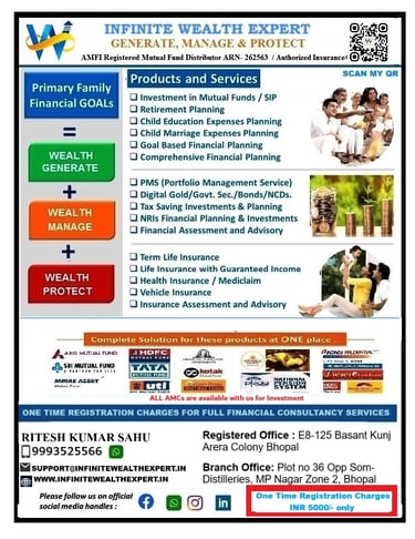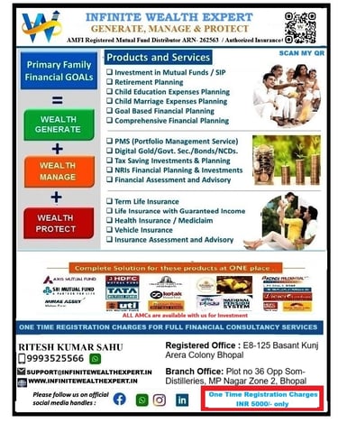 Register now to get Full Financial Consultancy Services regarding your Financial Decision, Cash Flow Management, Enhancing your Salary Income , additional Business Income, Insurance policy review & Investment Goal planning, Major Expenses Planning, WILL writing and other Fianancial decision making support and move towards "FINANCIAL FREEDOM".